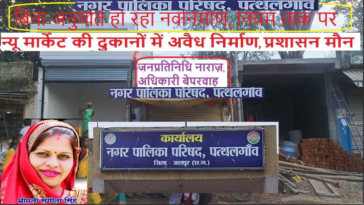 पत्थलगांव। नगर पालिका के अधीनस्थ न्यू मार्केट की दुकानों का स्वरूप बदलकर अवैध निर्माण किए जाने का मामला अब जोर पकड़ चुका है। अम्बिकापुर रोड मंडी के सामने स्थित इन दुकानों को तोड़कर नया रूप दिया जा रहा है, जबकि विभागीय अधिकारियों तक इसकी जानकारी तक नहीं है। इस पूरे मामले ने नगर पालिका की कार्यप्रणाली और जनप्रतिनिधियों की भूमिका पर गंभीर सवाल खड़े कर दिए हैं।